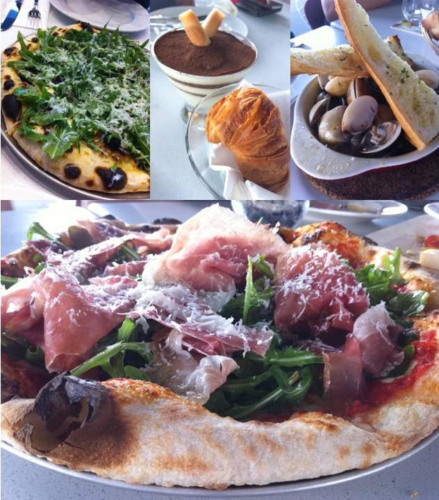 We had the Pistachio and Mini Rocket Pizza, which was so good we order another later on, the Prosciutto and Arugula Pizza,  Meatballs, Cold Cuts and Cheese Board, Clams, Garlic Bread, and ended off with Tiramisu with copious amounts of Cocoa powded on top.