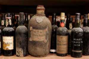 A Douro Port of the 19th century of the antique liquor collection of Bay van der Bunt of the Netherlands is seen in Breda February 16, 2012. The Dutch antique trader is selling his collection of over 5,000 unopened bottles of Cognac and other liquors, which he claims is the biggest of its kind. REUTERS/Michael Kooren (NETHERLANDS – Tags: BUSINESS SOCIETY) ORG XMIT: MKN06