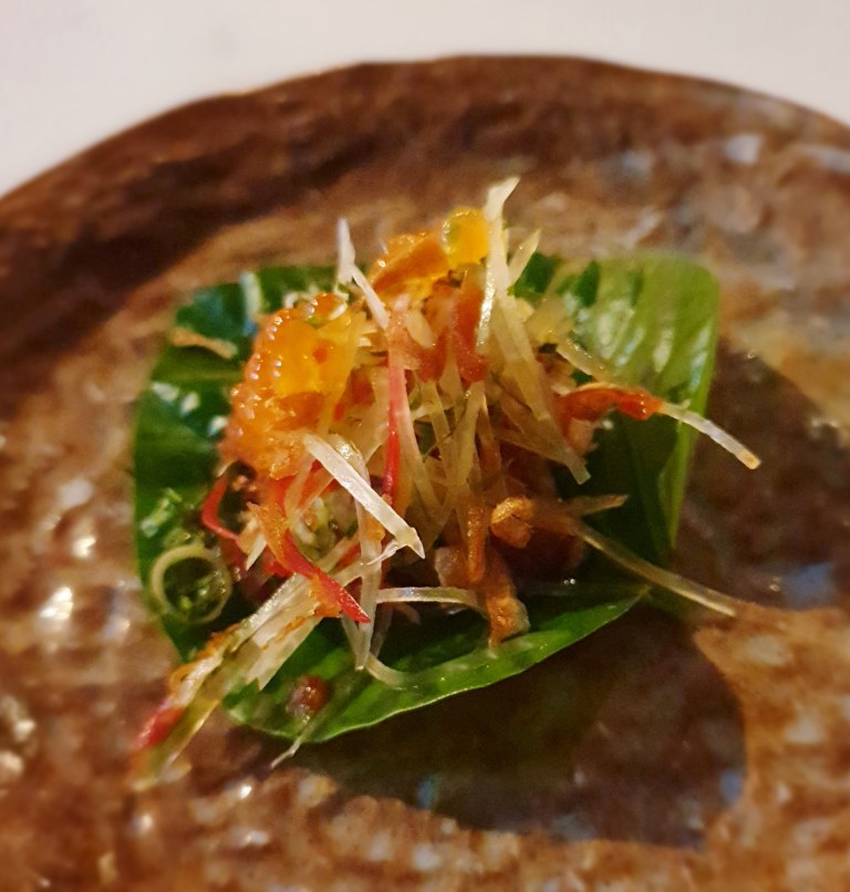 Betel leaf, smoked trout, green papaya, lime leaf & salmon roe