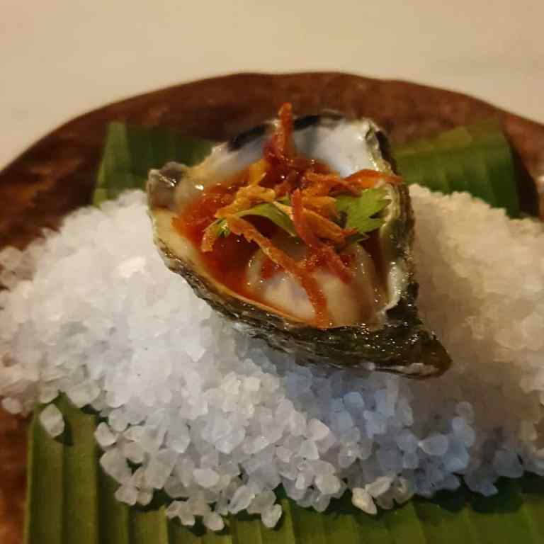 Freshly shucked Tasmanian oyster, red chilli nahm jim, crispy shallots
